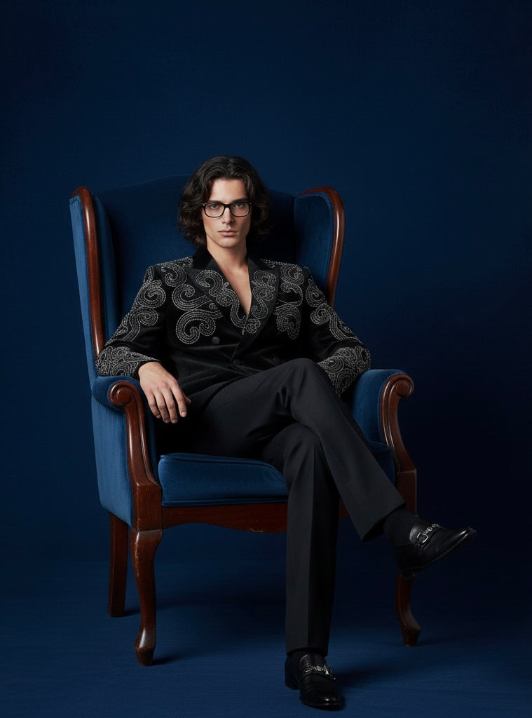 Luxury Hand-Embroidered Black Jodhpuri Suit with Heavy Metal Embroidery | Royal Designer Wear